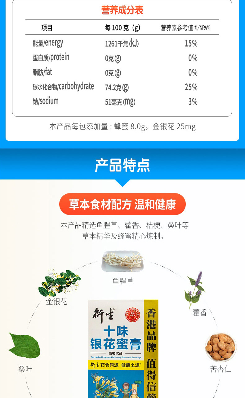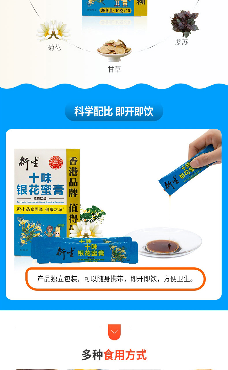 衍生十味銀花蜜膏植物飲品